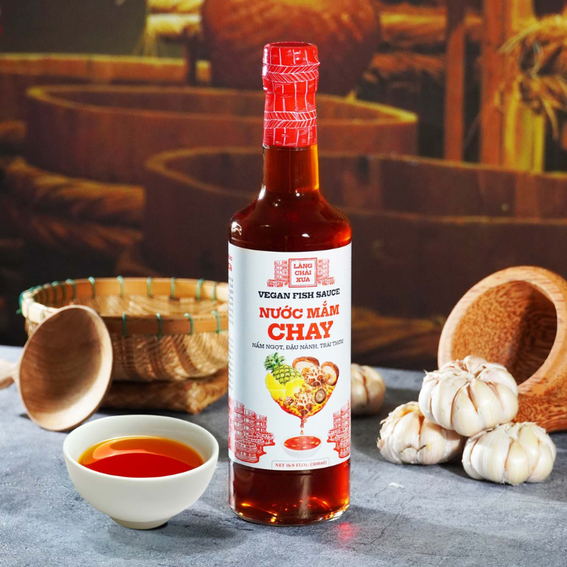 Làng Chài Xưa Vegetarian Fish Sauce is made from natural ingredients, offering a rich, distinctive flavor that is perfect for vegetarians or those looking to reduce animal-based products in their diet. This sauce contains no animal ingredients and uses plant-based ingredients such as mushrooms and soybeans, providing a light yet flavorful vegetarian option.